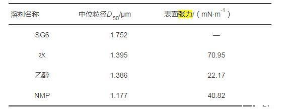 不同表面张力的球磨溶剂对微晶石墨粒径的影响