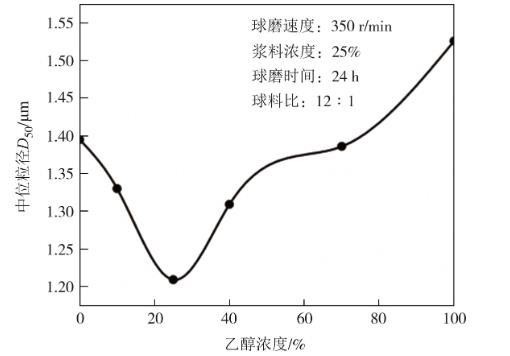 图2采用不同浓度的乙醇溶液做球磨溶剂时微晶石墨的中位粒径