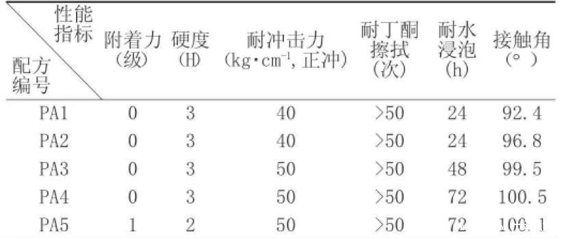 在制得不同配方的涂料之后(PA1-PA5),我们进一步制备了相应的水性氟丙树脂涂料涂膜,其性能指标见表3。