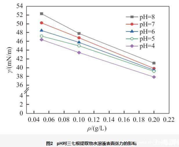 > 不同质量浓度、pH、盐度对三七根提取物水溶液表面张力的影响(二)