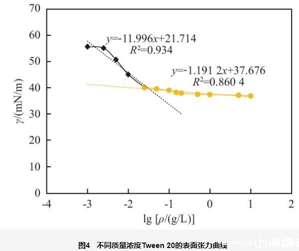 2.2 Tween 20水溶液的表面张力和临界胶束浓度