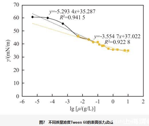 2.4.1 Tween 60水溶液的表面张力和临界胶束浓度