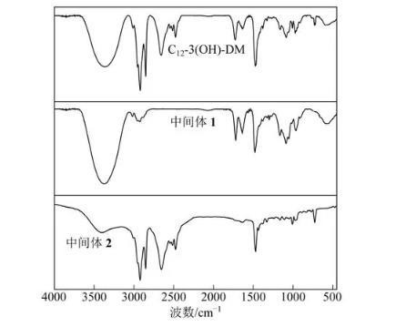 图1 Gemini表面活性剂C12-3(OH)-DM的红外光谱图