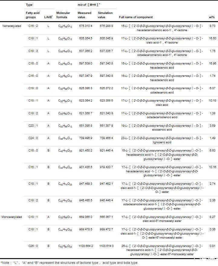 表2去乙酰化SLs同系物组分和质量分数(Continued from previous page)