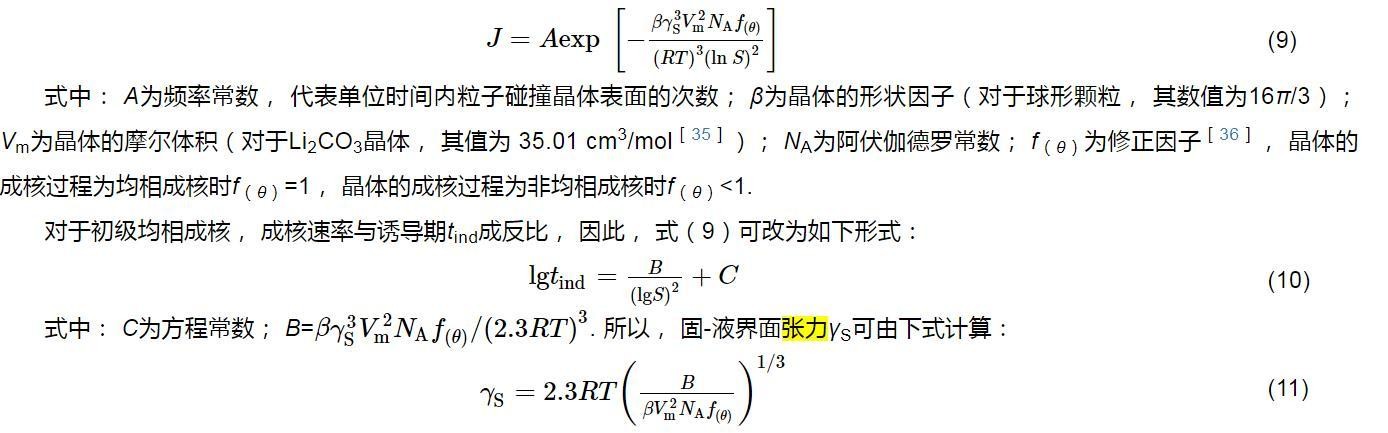 诱导期测定法研究NaCl的添加对碳酸锂固-液界面张力等成核动力学参数影响——结果与讨论
