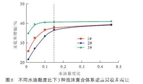 图6不同水油黏度比下3种泡沫复合体系驱油采收率增幅