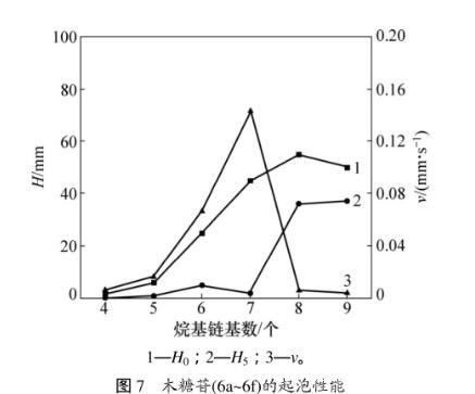 2.5烷基-β-D-吡喃木糖苷的起泡力及泡沫稳定性