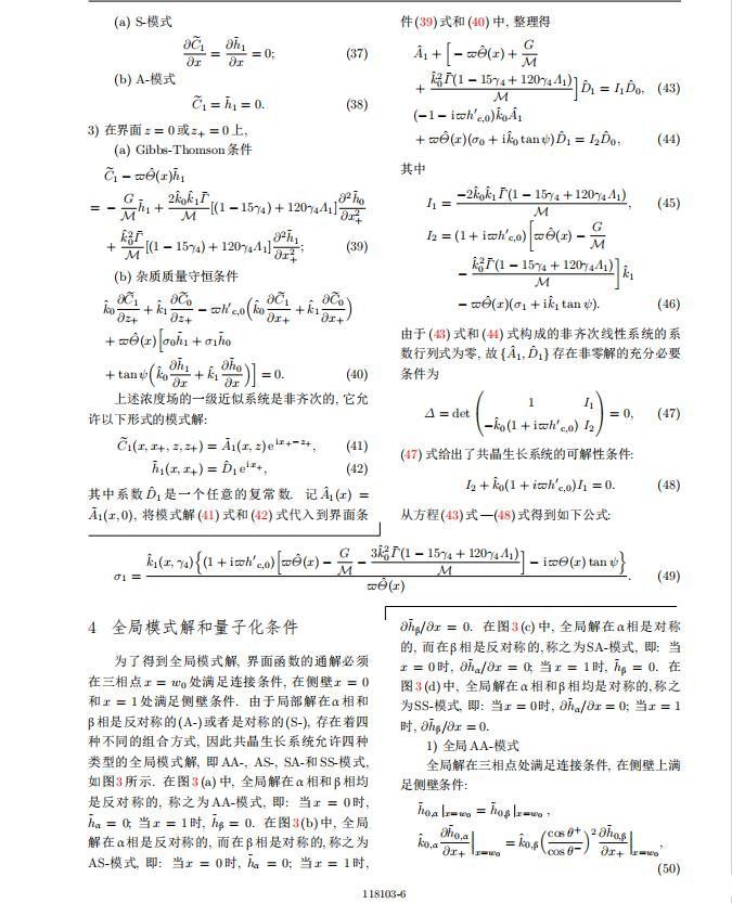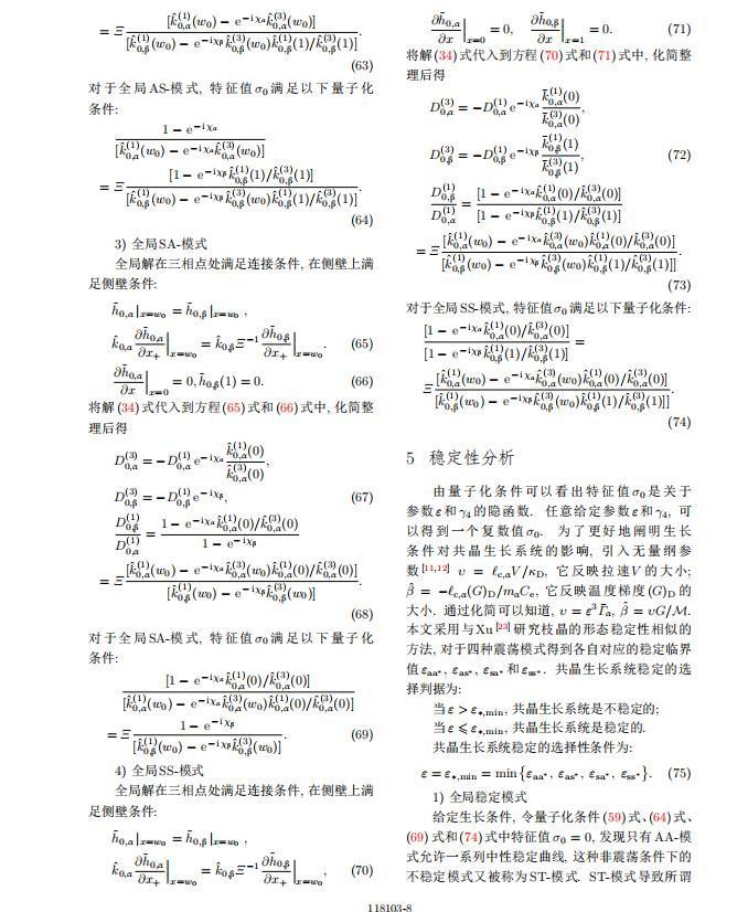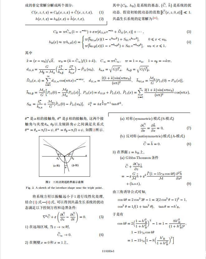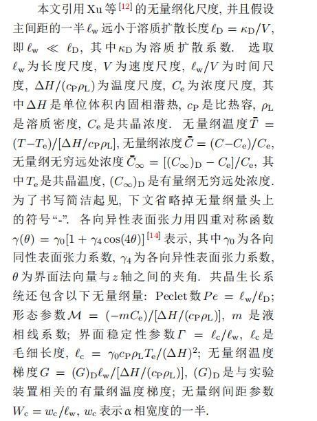 其中{CB,hB}是系统的基态,{e C,˜h}是系统的扰动态.假设初始扰动态的范数共晶生长系统的定常解为[11]: