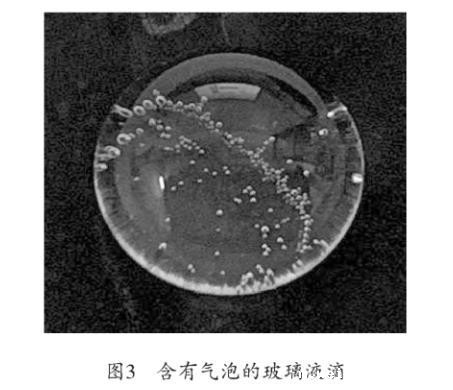 玻璃试样要保证化学组成的均匀性,且内部不能包含缺陷(气泡、结石和条纹等)。如有气泡会导致玻璃熔体体积失真,如图3所示。气泡中的气体受热会进一步膨胀,使玻璃液滴体积增大,导致玻璃液滴在测试温度下的密度偏低,最终影响玻璃熔体表面张力的测试结果。玻璃条纹和结石等缺陷也是玻璃成分不均的表现,在受热条件下影响玻璃熔体液滴形态,导致无法获得中心旋转轴对称的玻璃液滴,因此应选择无内在质量缺陷的玻璃。