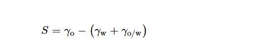 水成膜泡沫灭火剂具有泡沫窒息和液膜覆盖的协同灭火效果,其中氟碳表面活性剂能否在燃油表面有效地铺展,很大程度上影响了燃油火灾的扑灭效率。研究表明,铺展系数是用于评价表面活性剂在油表面能否有效铺展的重要参数,由下式计算: