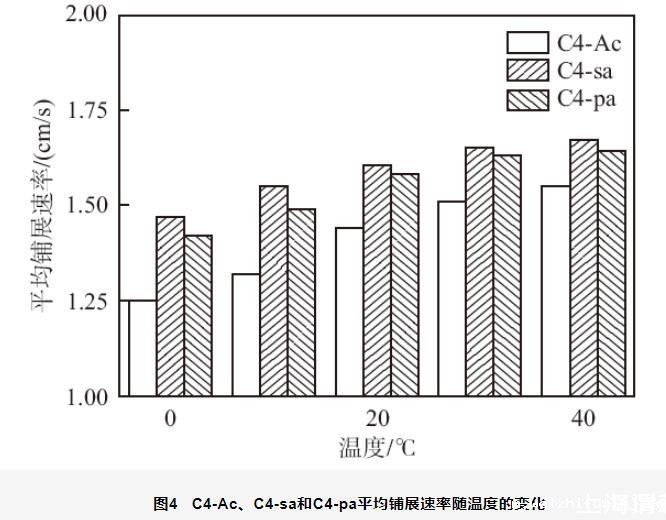 图4 C4-Ac、C4-sa和C4-pa平均铺展速率随温度的变化
