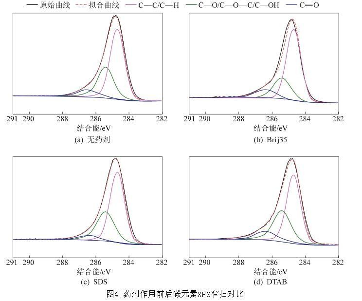 图4药剂作用前后碳元素XPS窄扫对比