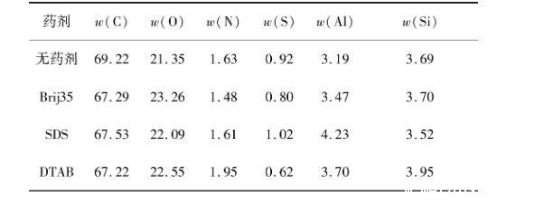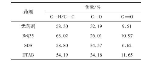 表4药剂作用前后煤表面元素含量XPS宽扫结果