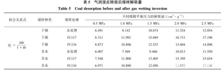 表5气润湿反转前后煤样解吸量