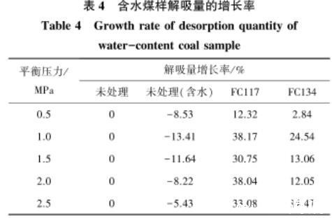 表4含水煤样解吸量的增长率