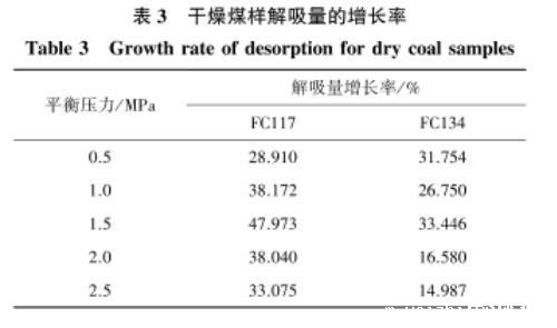 表3干燥煤样解吸量的增长率