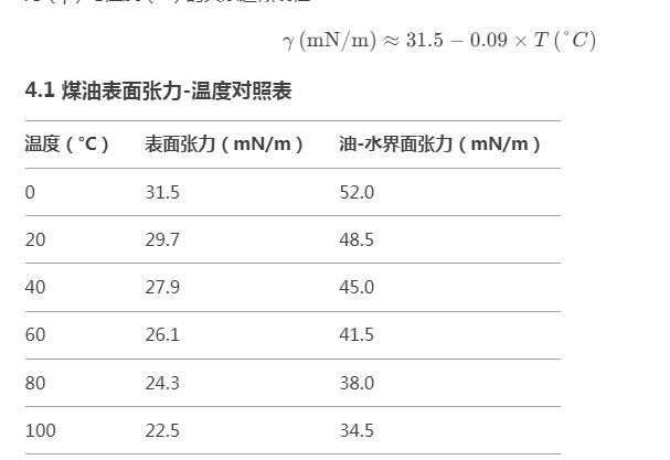 4.1煤油表面张力-温度对照表