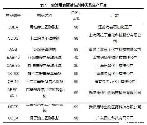 基于阴离子−非离子型表面活性剂复配最佳强化润湿高效驱油体系——实验部分