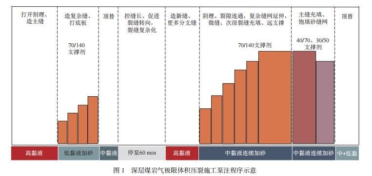 图1深层煤岩气极限体积压裂施工泵注程序示意