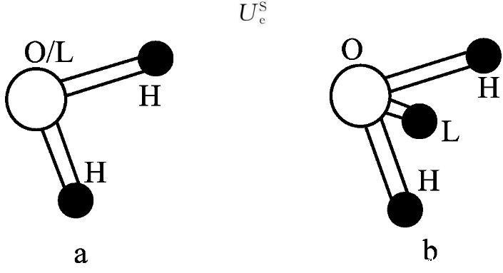 图3a中为SPC、SPCE和TIP3P模型,b为TIP4P模型(L:负电荷作用点;H:正电荷作用点)