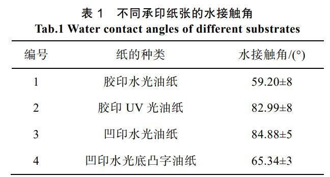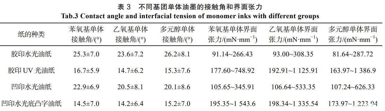 表2普通商用油墨对于不同承印纸张的接触角和界面张力