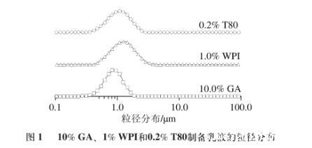 图1 10%GA、1%WPI和0.2%T80制备乳液的粒径分布