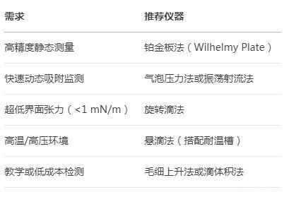 样品性质:高粘度液体适合悬滴法或旋转滴法,易挥发液体需密闭测量(如气泡压力法)。