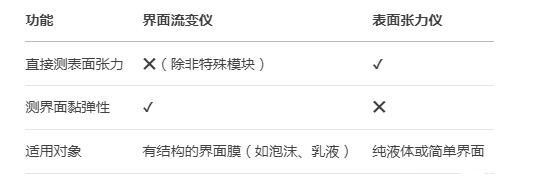 结论:界面流变仪的主要用途是研究界面力学行为,表面张力测量需依赖专用设备或特殊扩展模块。