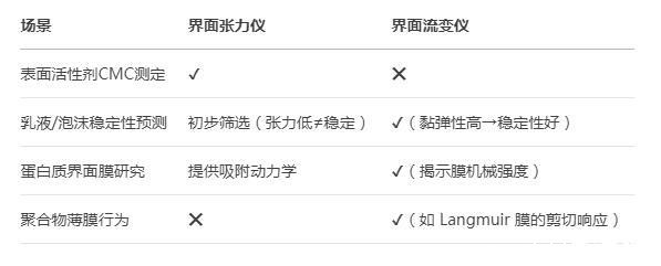 乳液/泡沫稳定性预测初步筛选(张力低≠稳定)✔️(黏弹性高→稳定性好)