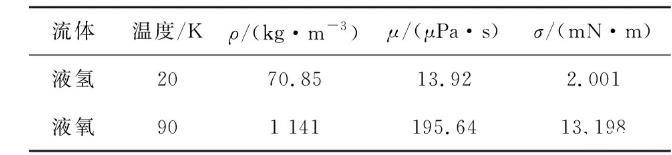 表1液氢与液氧的物性参数(0.1 MPa)
