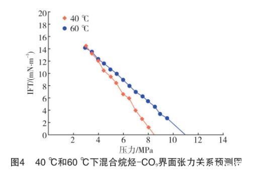 (1)烷烃组分。对比文献的结果发现,40℃和60℃下所得到的MMP值均小于文献值,其结果对比见表3。