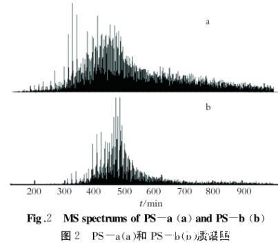 在确定的质谱分析条件下,样品PS-a和PS-b的质谱图如图2所示。