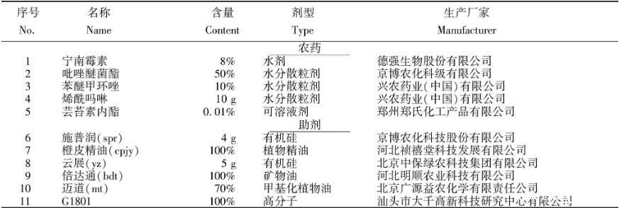 1.1.1药剂防治辣椒病害常用的5种农药和6种表面活性剂的相关信息详见表1。