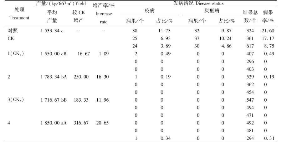 2.2对病虫害的防治效果及产量的影响