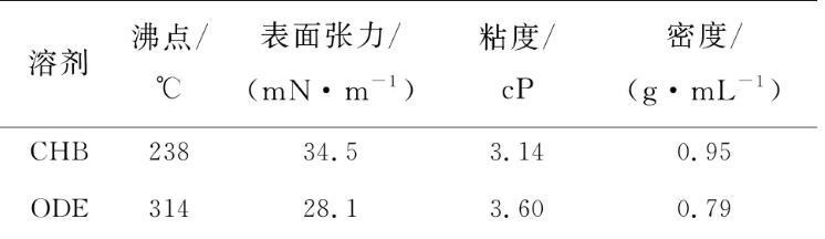 表1 CHB和ODE的沸点、表面张力等物理参数