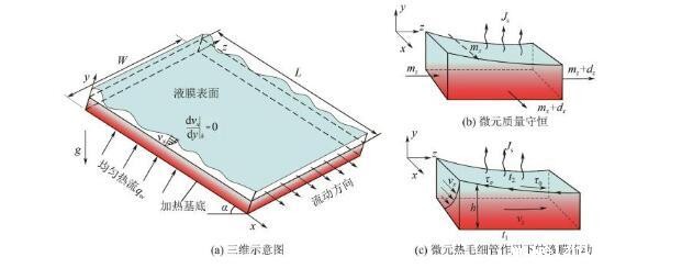 为增强数学模型的实用性,在构建倾斜加热壁面上液膜数值模拟之前,提出以下基本假设。