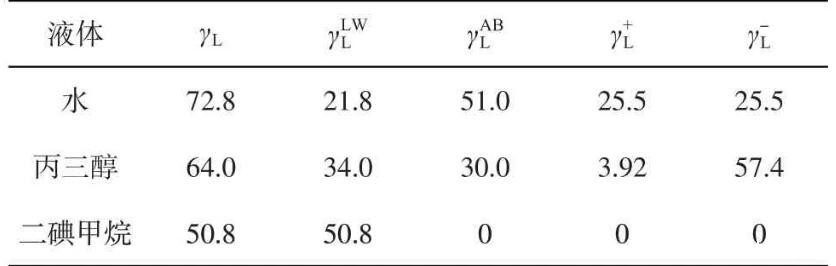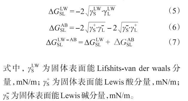 根据DLVO扩展理论,首先分别通过式(5)和式(6)计算LW相互作用自由能(和AB相互作用自由能()。然后,通过式(7)计算去离子水溶液中的液-固界面作用能()。
