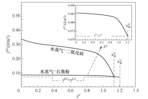 采用实验测量和理论分析相结合的方法,研究了水蒸气在石墨及二氧化硅表面的吸附特性,分析了气固界面的吸附行为及团簇演变规律,获取了零吸附条件下固体表面张力,确定了吸附相变及润湿发生条件,具体结论如下。