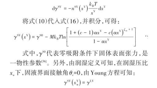 由Gibbs方程可知,气固界面张力γSV与吸附量满足: