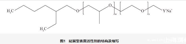烷基氧丙烯氧乙烯羧酸盐(APEC)系列表面活性剂:C8P5E5C、C8P5E10C、C8P5E15C、C8P10E5C、C8P10E10C、C8P10E15C、C8P15E5C、C8P15E10C、C8P15E15C;烷基氧丙烯氧乙烯羧酸盐(APES)系列表面活性剂:C8P10E5S、C8P15E5S、C8P15E10S,中国科学院理化技术研究所合成,活性物有效含量>85%。结构及缩写见图1。