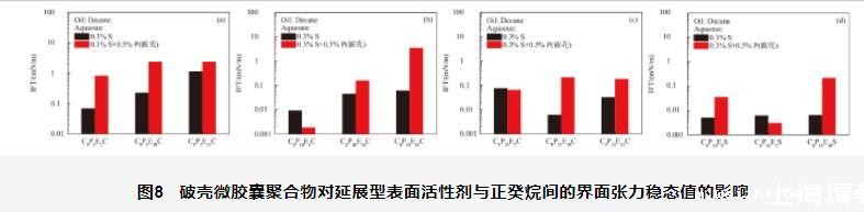 图8破壳微胶囊聚合物对延展型表面活性剂与正癸烷间的界面张力稳态值的影响