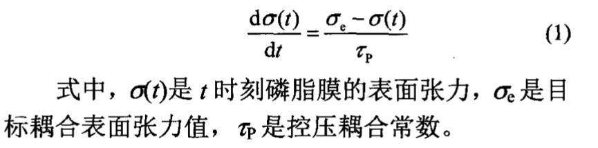 式中,σ(t)是t时刻磷脂膜的表面张力,σe是目标耦合表面张力值,τP是控压耦合常数。