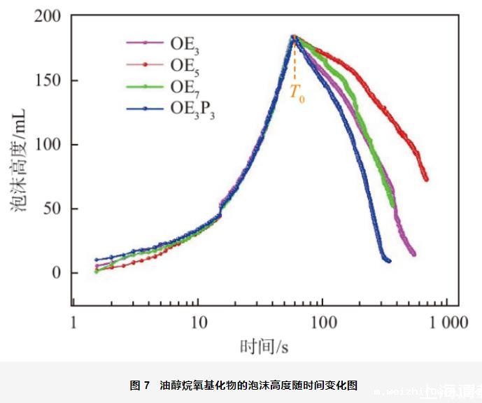 图7油醇烷氧基化物的泡沫高度随时间变化图