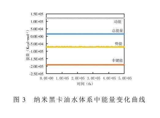 图3纳米黑卡油水体系中能量变化曲线