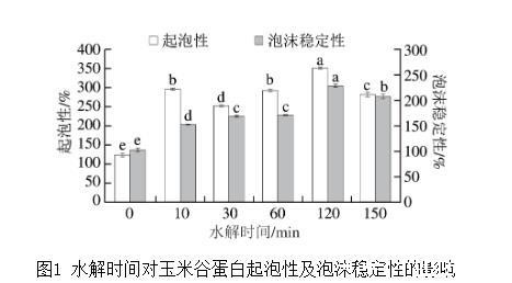 图1水解时间对玉米谷蛋白起泡性及泡沫稳定性的影响