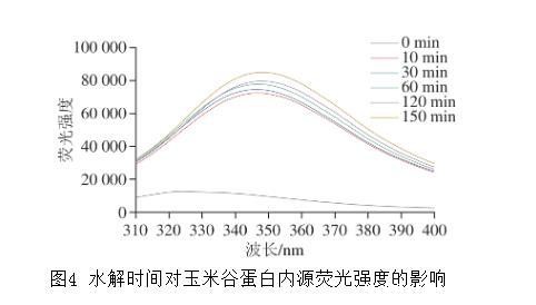 图4水解时间对玉米谷蛋白内源荧光强度的影响