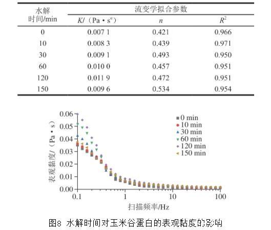 表2不同水解时间的玉米谷蛋白水解物流变学拟合参数