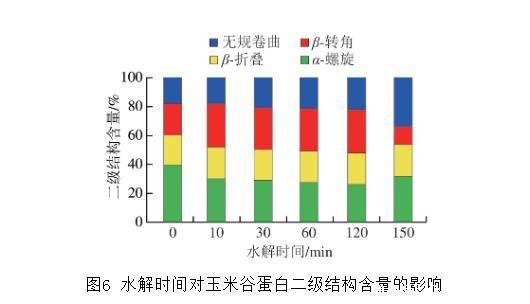 图6水解时间对玉米谷蛋白二级结构含量的影响