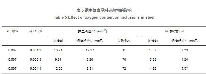 表5钢中氧含量对夹杂物的影响