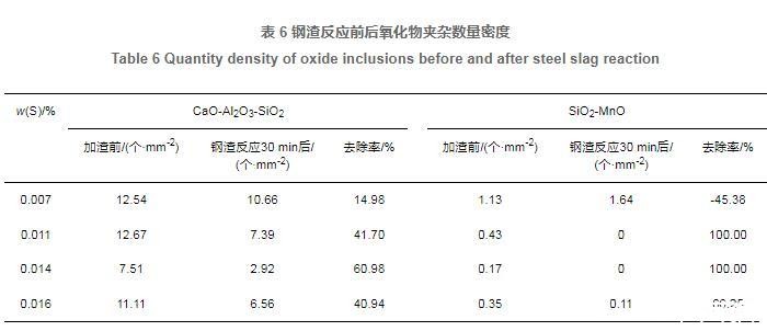 表6钢渣反应前后氧化物夹杂数量密度